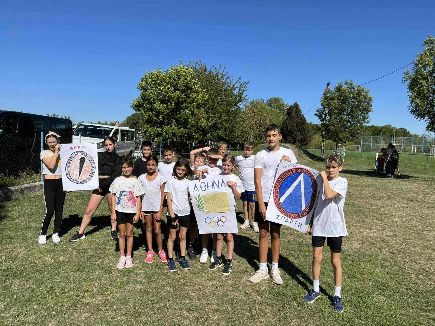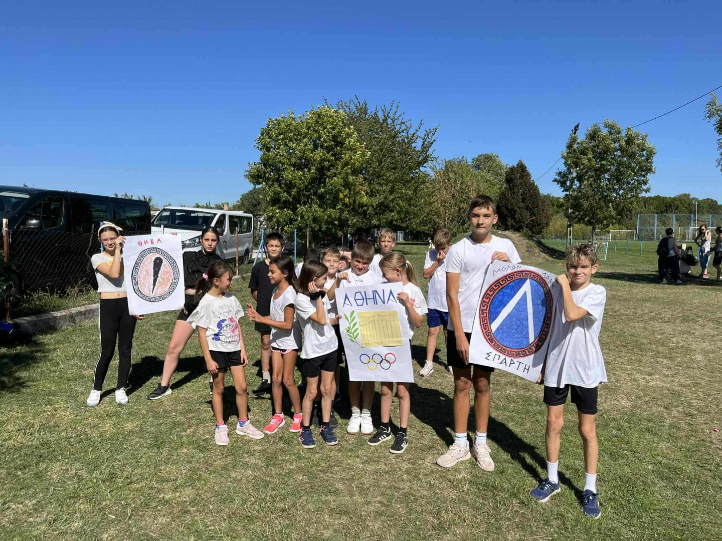 A gyerekek három különböző korosztályban versenyeztek, három mitikus városállam – Athén, Théba és Korinthosz – színeiben. Minden csapat saját zászlót tervezett és készített, amelyeket büszkén lobogtattak a megmérettetések alatt.