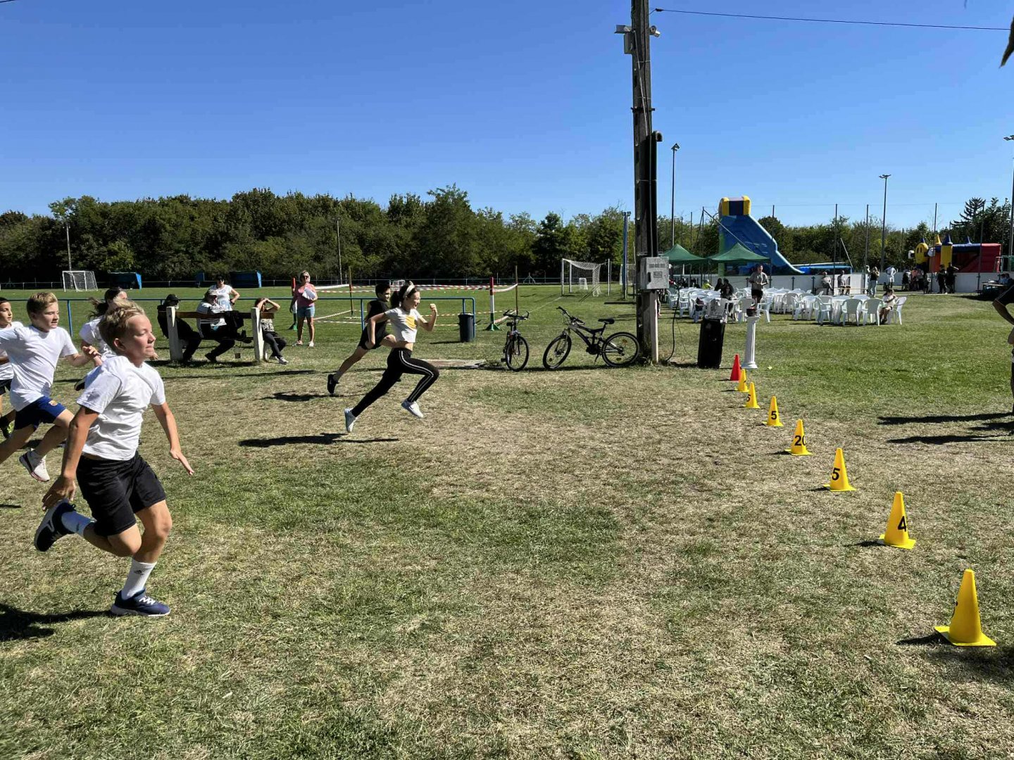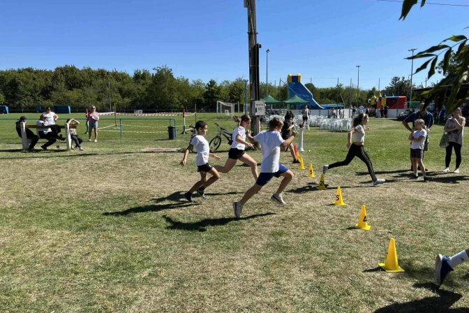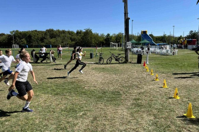 A 5–6. osztályosok küzdöttek ebben az ügyességi számban. A versenyzők 100 métert futottak egy narancssárga kúphoz, amit fel kellett venni, majd visszafutni vele a célba – koncentráció és gyorsaság kellett egyszerre!