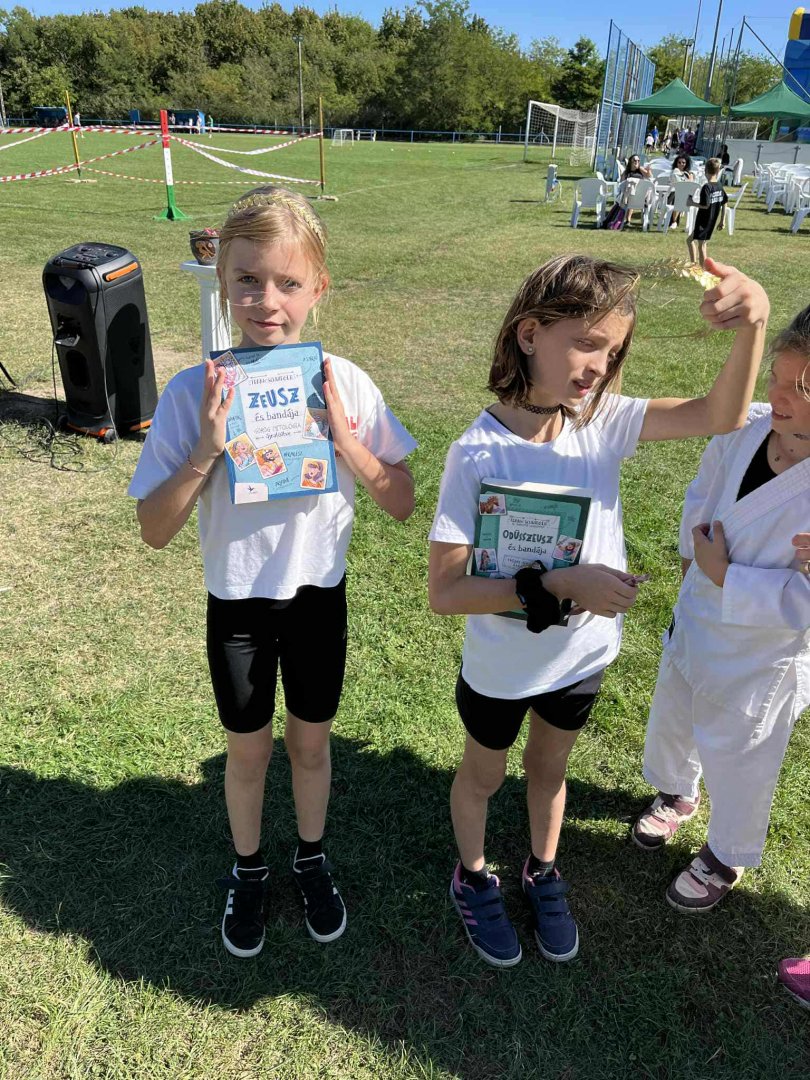A versenyek végén a legeredményesebb versenyzőket babérkoszorúval jutalmaztuk, ezzel is tisztelegve az ókori olimpiai hagyományok előtt. Ezen túlmenően Frank Schwieger "Görög istenek" című izgalmas, gyerekeknek szóló könyveit is átadtuk ajándékként – egy kis kultúra a sport mellé!